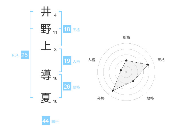 井野上 導夏さんの天格は18画の4点