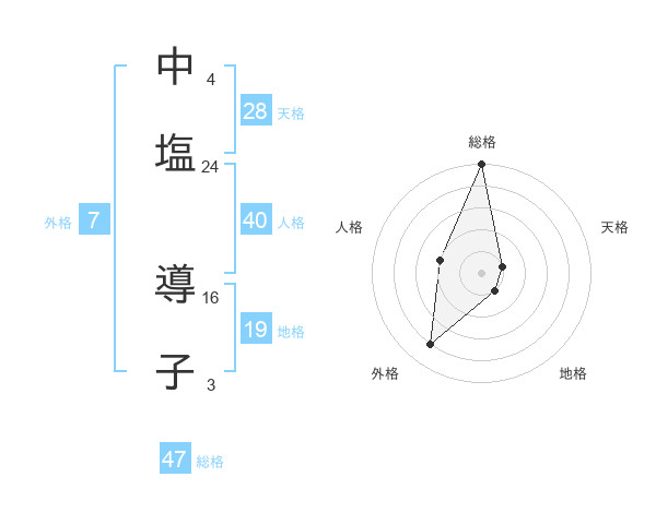 中塩 導子さんの総格は47画の5点!
