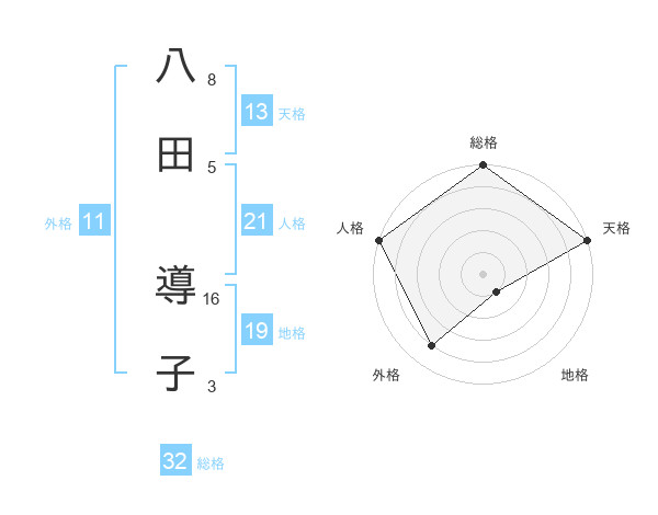 八田 導子さんの天格は13画の5点!