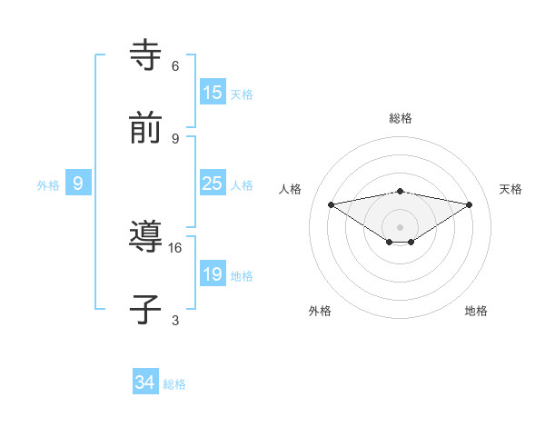 寺前 導子さんの総格は34画の2点!