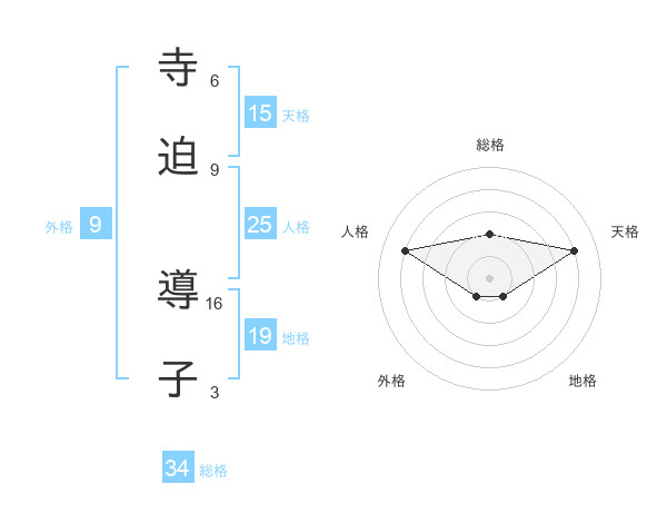 寺迫 導子さんの総格は34画の2点!