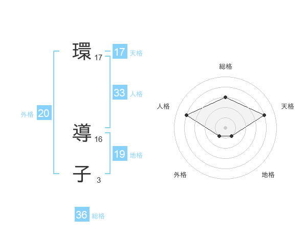 環 導子さんの天格は17画の4点!