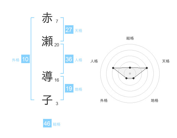 赤瀬 導子さんを姓名の画数から五運を鑑定
