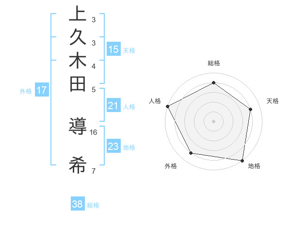 上久木田 導希さんを姓名の画数から五運を鑑定