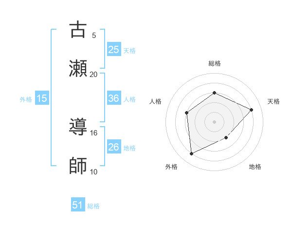 古瀬 導師さんの総格は51画の3点!