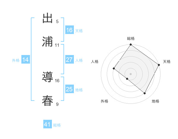 出浦 導春さんの総格は41画の5点!