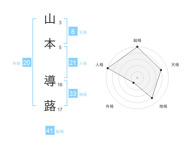 山本 導蕗さんの総格は41画の5点!