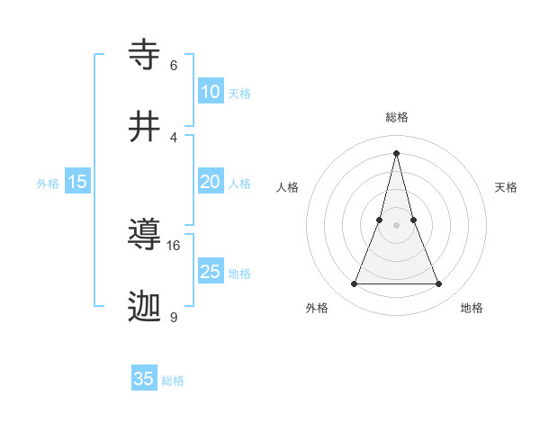 寺井 導迦さんの総格は35画の4点!