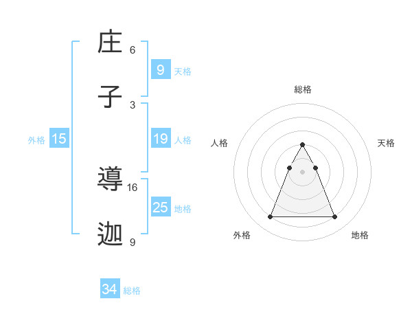 庄子 導迦さんの総格は34画の2点!