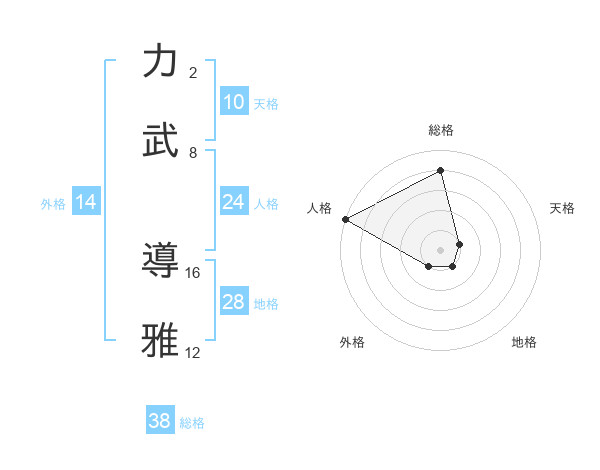 力武 導雅さんの総格は38画の4点!