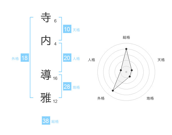 寺内 導雅さんの総格は38画の4点!