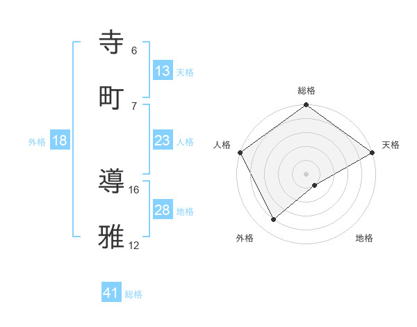 寺町 導雅さんを姓名の画数から五運を鑑定
