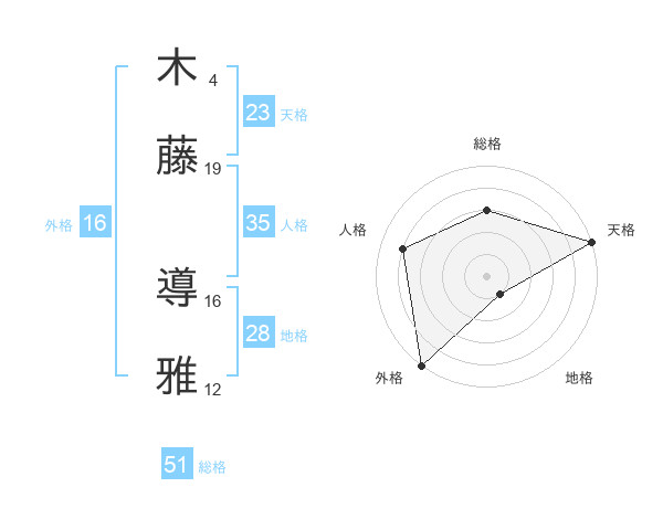 木藤 導雅さんを姓名の画数から五運を鑑定