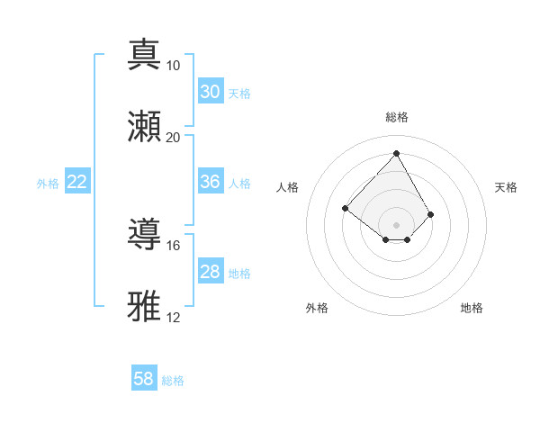 真瀬 導雅さんの総格は58画の4点!