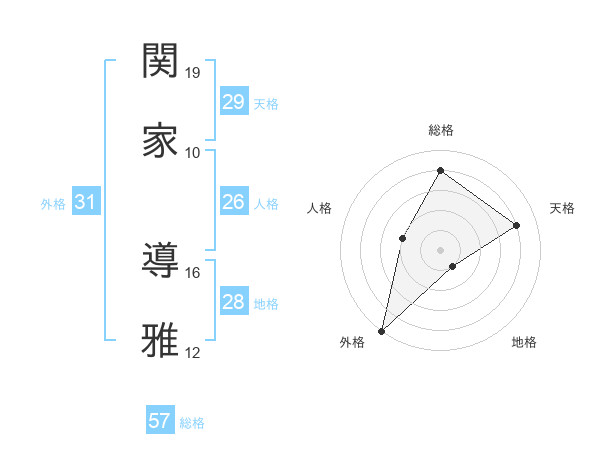 関家 導雅さんの総格は57画の4点!