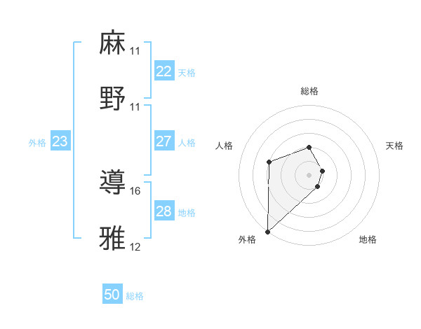 麻野 導雅さんを姓名の画数から五運を鑑定