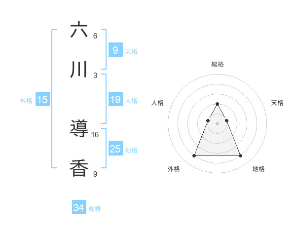六川 導香さんの総格は34画の2点!