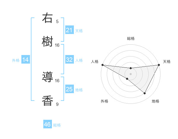 右樹 導香さんの天格は21画の5点!