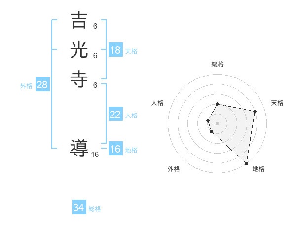 吉光寺 導さんを姓名の画数から五運を鑑定