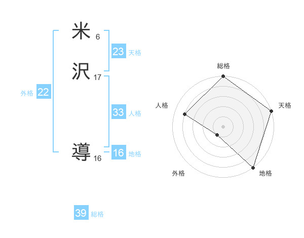 米沢 導さんの天格は23画の5点!