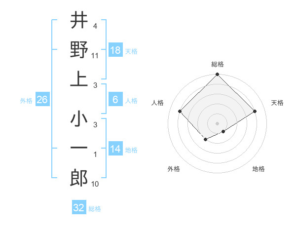 井野上 小一郎さんの総格は32画の5点!