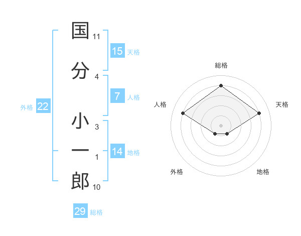国分 小一郎さんを姓名の画数から五運を鑑定