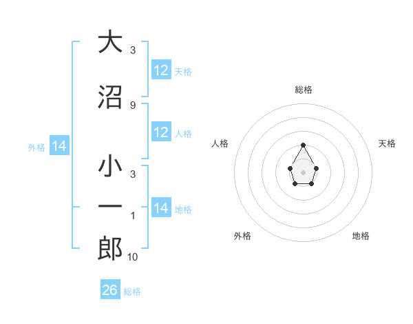 大沼 小一郎さんを姓名の画数から五運を鑑定