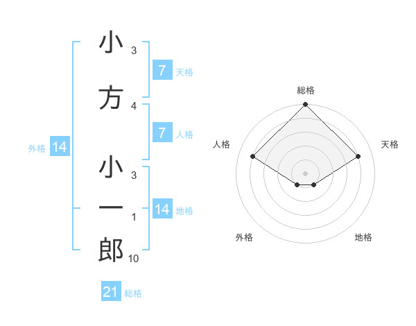 小方 小一郎さんの総格は21画の5点!