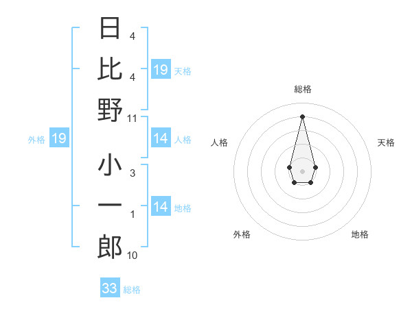 日比野 小一郎さんの総格は33画の4点