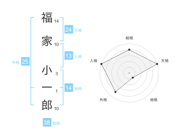 福家 小一郎さんを姓名の画数から五運を鑑定