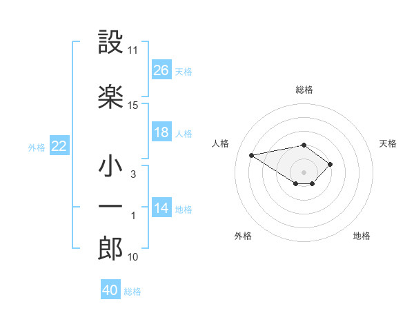 設楽 小一郎さんを姓名の画数から五運を鑑定