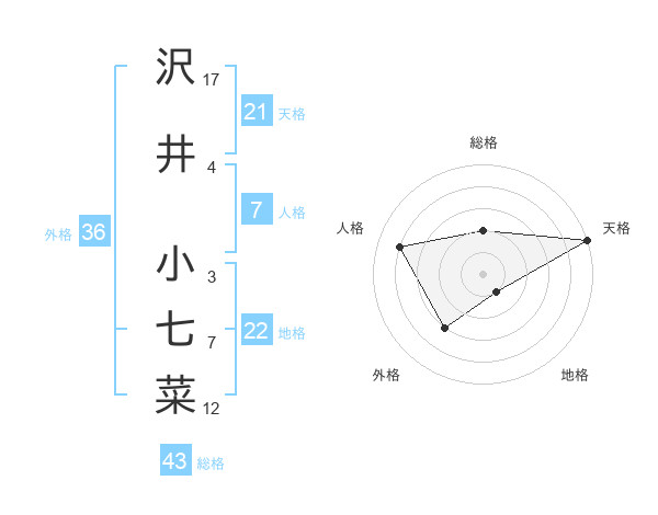 沢井 小七菜さんを姓名の画数から五運を鑑定