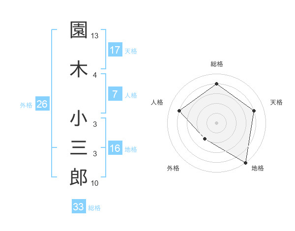 園木 小三郎さんの天格は17画の4点!