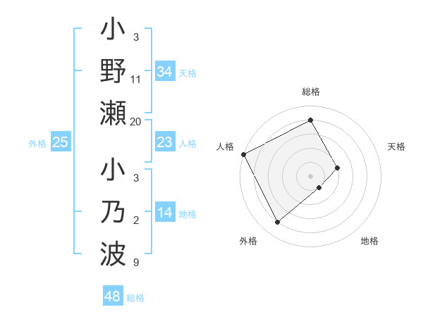 小野瀬 小乃波さんを姓名の画数から五運を鑑定