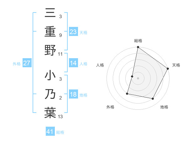 三重野 小乃葉さんを姓名の画数から五運を鑑定
