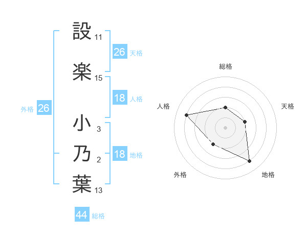 設楽 小乃葉さんの外格は26画の2点!