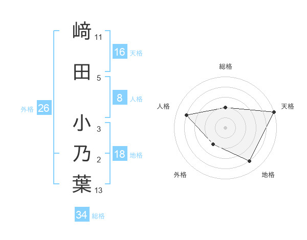 﨑田 小乃葉さんを姓名の画数から五運を鑑定