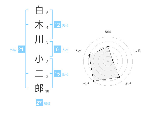 白木川 小二郎さんを姓名の画数から五運を鑑定