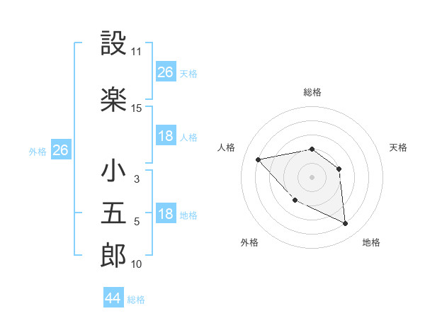 設楽 小五郎さんを姓名の画数から五運を鑑定