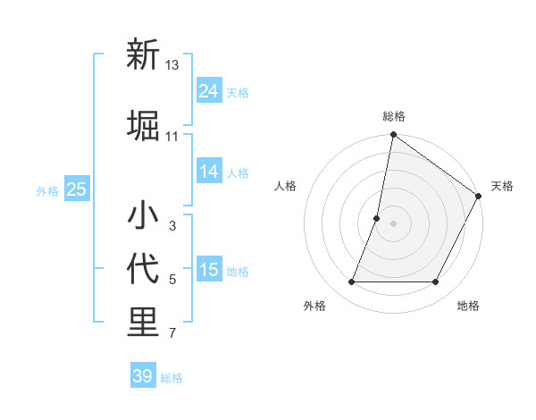 新堀 小代里さんを姓名の画数から五運を鑑定
