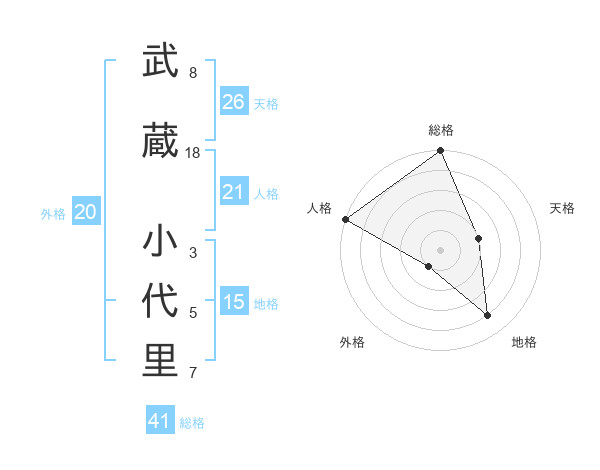 武蔵 小代里さんを姓名の画数から五運を鑑定