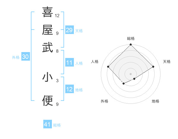 喜屋武 小便さんを姓名の画数から五運を鑑定