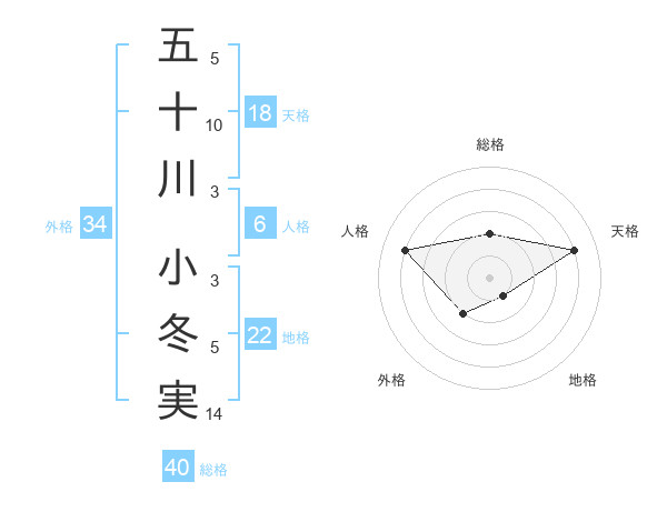 五十川 小冬実さんを姓名の画数から五運を鑑定