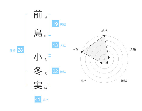 前島 小冬実さんを姓名の画数から五運を鑑定