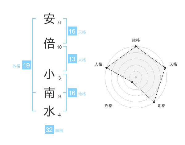 安倍 小南水さんの天格は16画の5点!