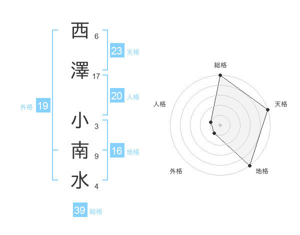 西澤 小南水さんを姓名の画数から五運を鑑定