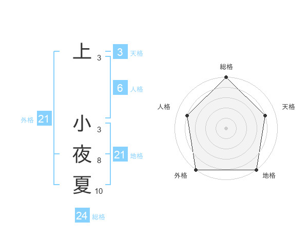 上 小夜夏さんを姓名の画数から五運を鑑定