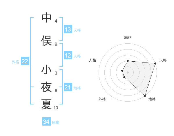 中俣 小夜夏さんを姓名の画数から五運を鑑定
