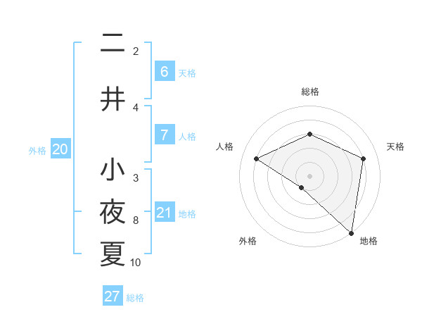 二井 小夜夏さんの天格は6画の4点!