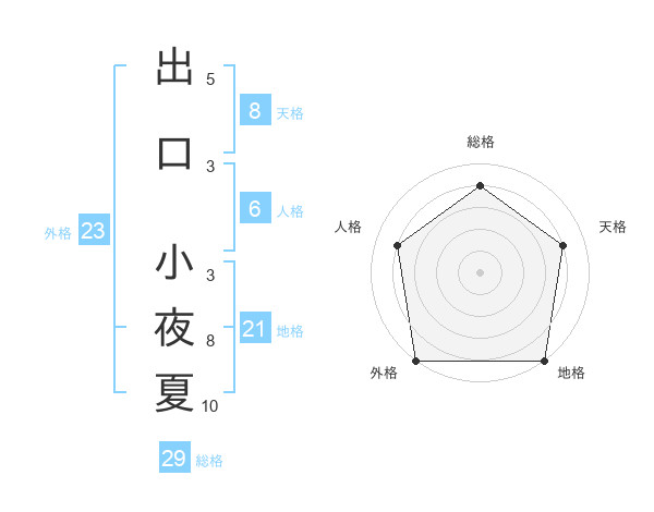 出口 小夜夏さんの外格は23画の5点!